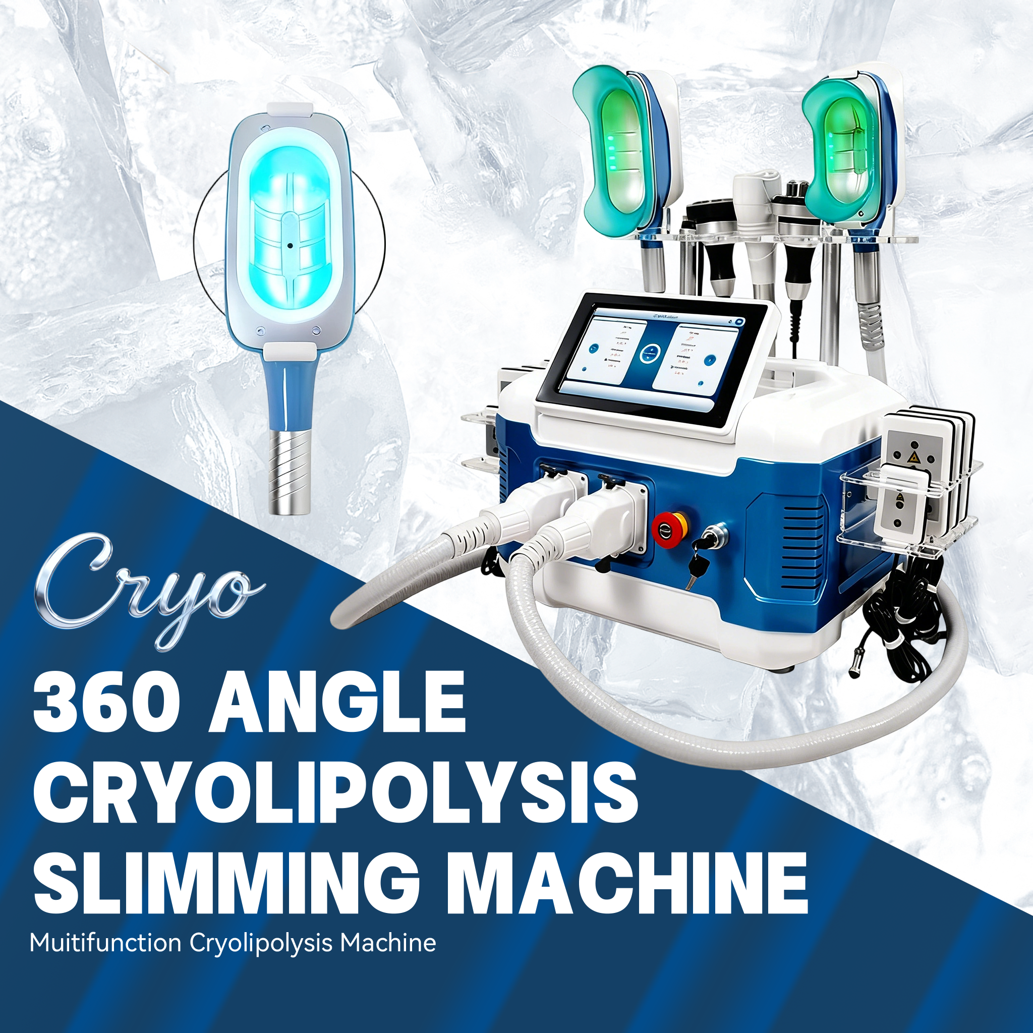This is a portable 360° cryolipolysis slimming machine, focusing on local fat freezing decomposition and body shaping. It is equipped with exchangeable cryo handles of different sizes, suitable for 360° all-around treatment of areas like the waist, abdomen and thighs. The device integrates a touchscreen operation interface, balancing portability and multifunctionality. It applies to small and medium-sized medical aesthetic institutions and body management centers, serving as a non-invasive fat reduction device that combines comfortable experience and shaping efficiency.