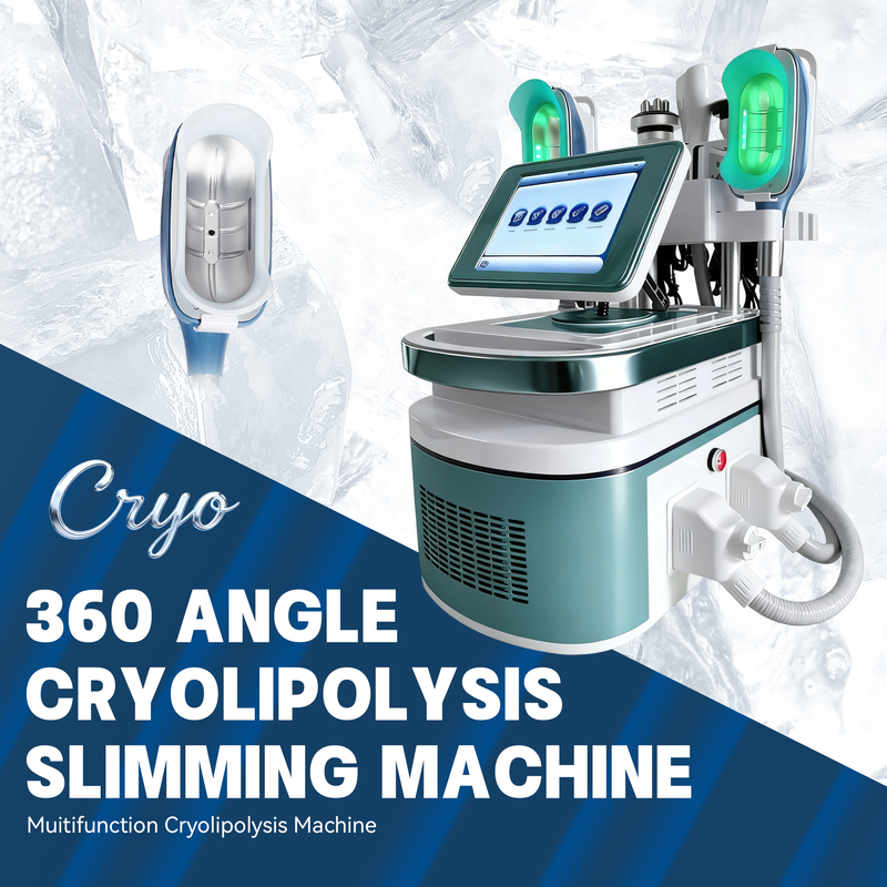 This is a portable 360° cryolipolysis slimming machine, focusing on local fat freezing decomposition and body shaping. It is equipped with exchangeable cryo handles of different sizes, suitable for 360° all-around treatment of areas like the waist, abdomen and thighs. The device integrates a touchscreen operation interface, balancing portability and multifunctionality. It applies to small and medium-sized medical aesthetic institutions and body management centers, serving as a non-invasive fat reduction device that combines comfortable experience and shaping efficiency.