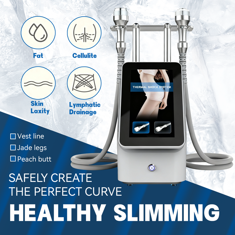 Integrates three core technologies: Cryo (Freezing) + Thermal (Shock) + EMS. Equipped with dual operation probes and a touch screen for mode switching, it combines functions of fat reduction, skin tightening, and muscle toning.