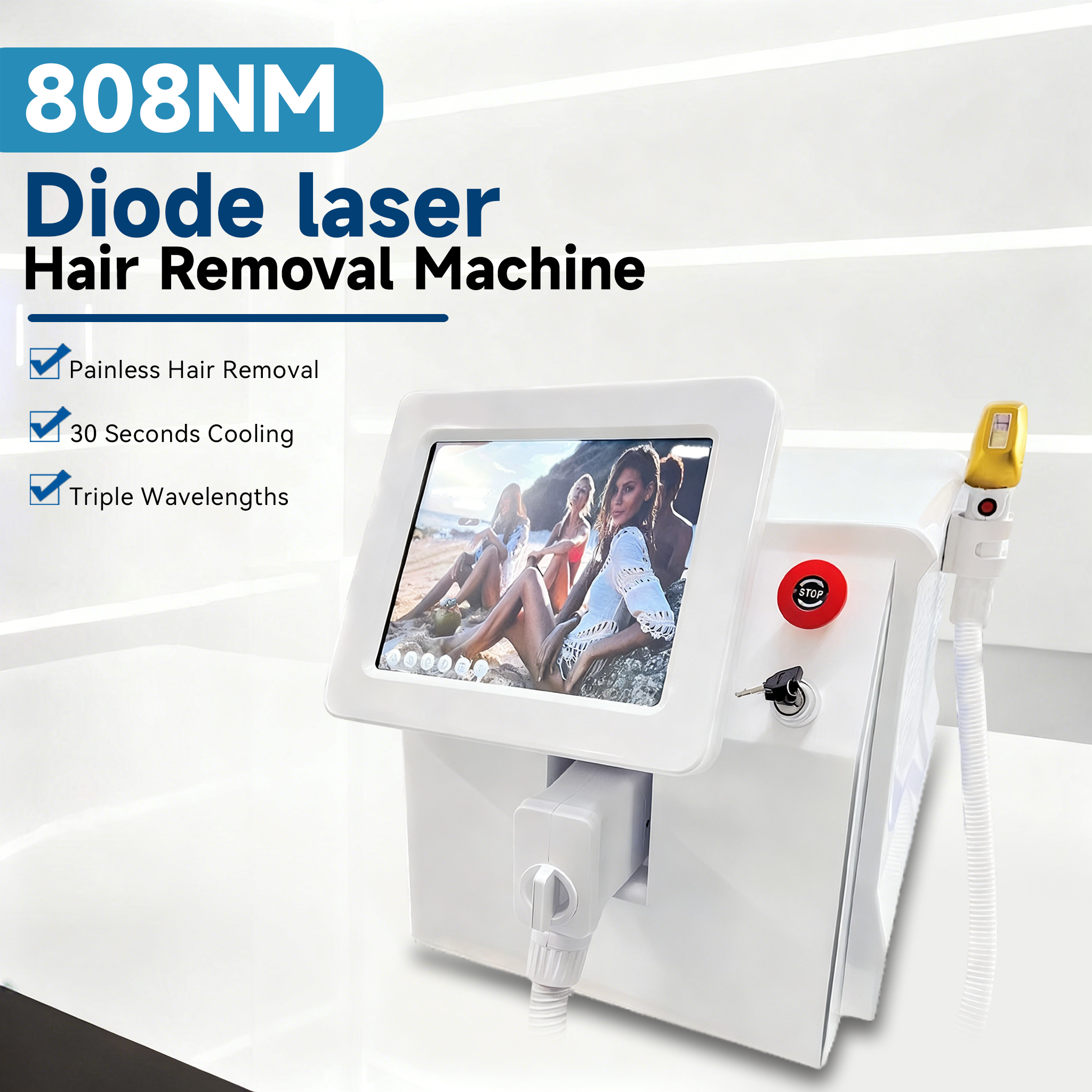 Following the core principle of selective photothermolysis, precise hair removal is achieved with 808nm wavelength as the core: This wavelength has a high selective absorption characteristic for melanin in hair follicles. After the laser energy is absorbed by melanin, it is quickly converted into heat energy, raising the local temperature of the hair follicle to above 60℃, irreversibly destroying the activity of hair follicle stem cells and dermal papilla tissue, and inhibiting hair growth. Combined with 755nm wavelength to enhance the absorption capacity of light-colored hair, and 1064nm wavelength to reduce the risk of epidermal absorption of dark skin, the three work together to expand the adaptation range, ensuring safe and efficient permanent hair removal effects for different skin types and hair types.