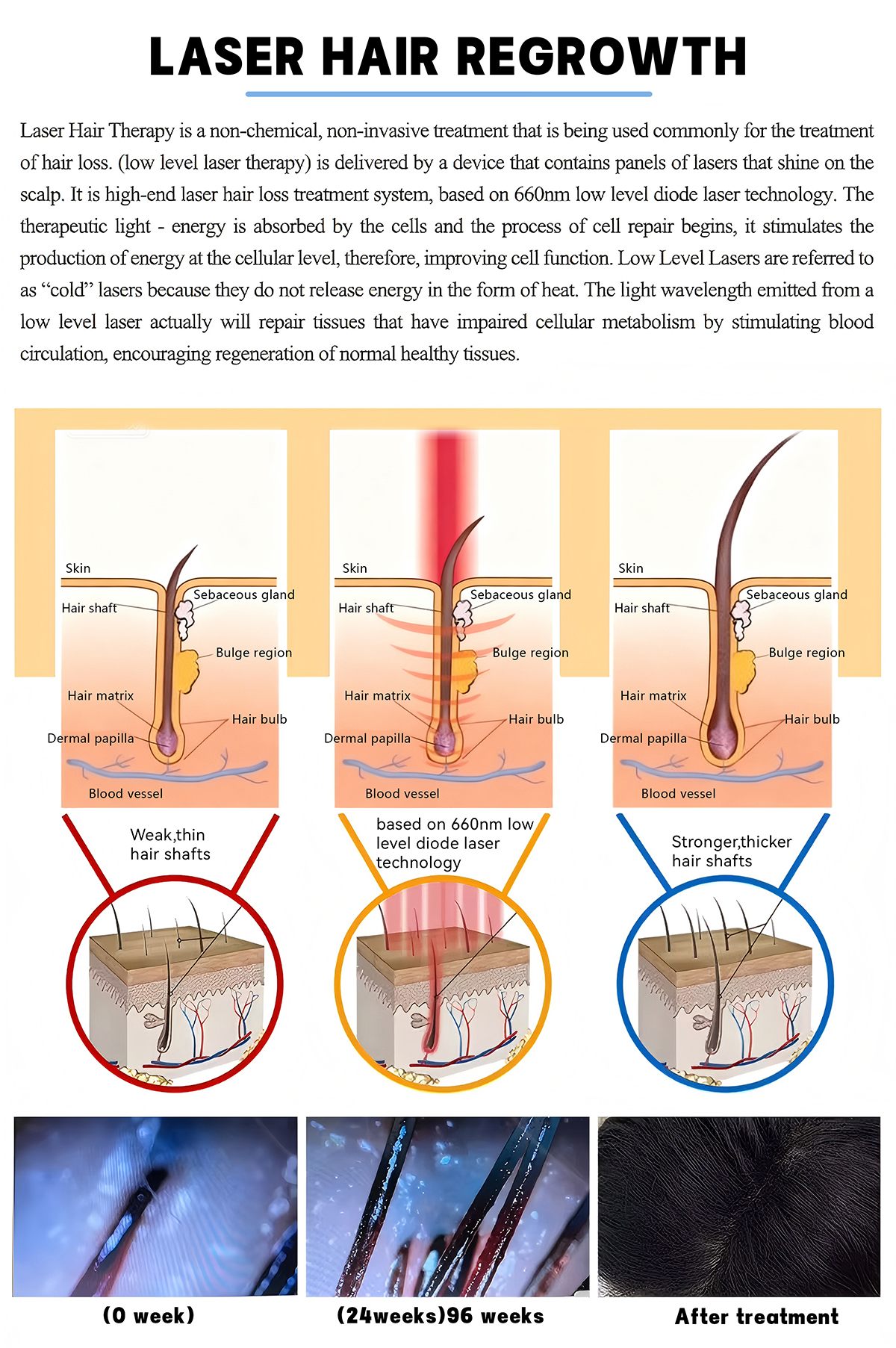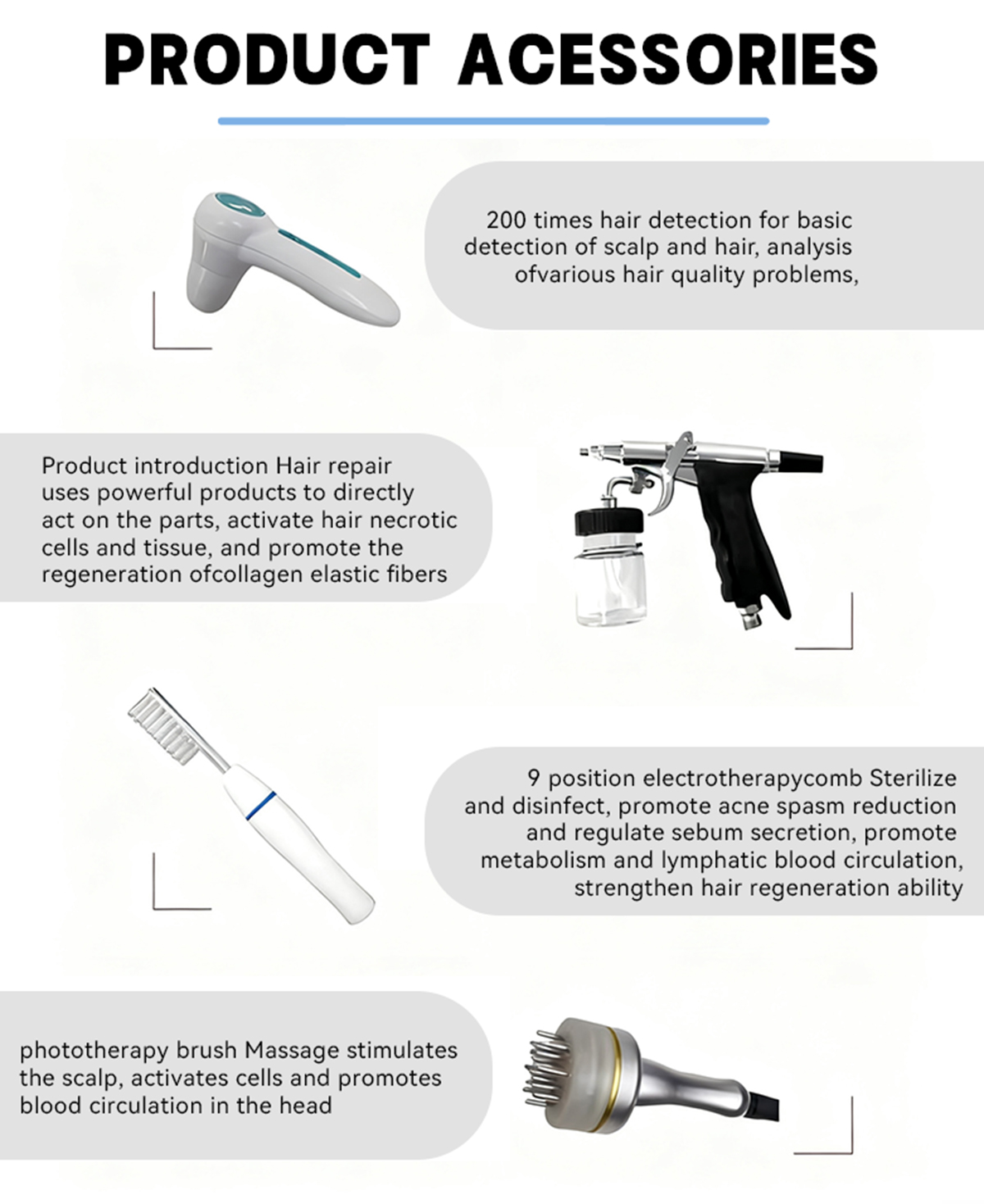 It adopts radiation-free low-energy soft laser (SOFT LASER), with the wavelength accurately controlled within the golden range for hair follicle activation (approximately 650nm). The energy is gentle yet highly penetrative, which can penetrate deep into the scalp to act on hair follicles while avoiding radiation damage to the human body. Equipped with a high-definition microscopic lens, it provides an accurate visual basis for scalp care. Through the high-pressure oxygen injection system, oxygen and nutrient essences are strongly delivered to the deep layers of the scalp in the form of micro-molecules, breaking through the epidermal barrier to directly supplement oxygen and nutrients to hair follicles. The multi-contact design of the massage brush head can simulate professional massage techniques to accurately stimulate the meridian acupuncture points on the scalp. By using high-frequency electrotherapy technology, it applies current of a specific frequency to the scalp, improving scalp microcirculation and activating the metabolic vitality of scalp cells.