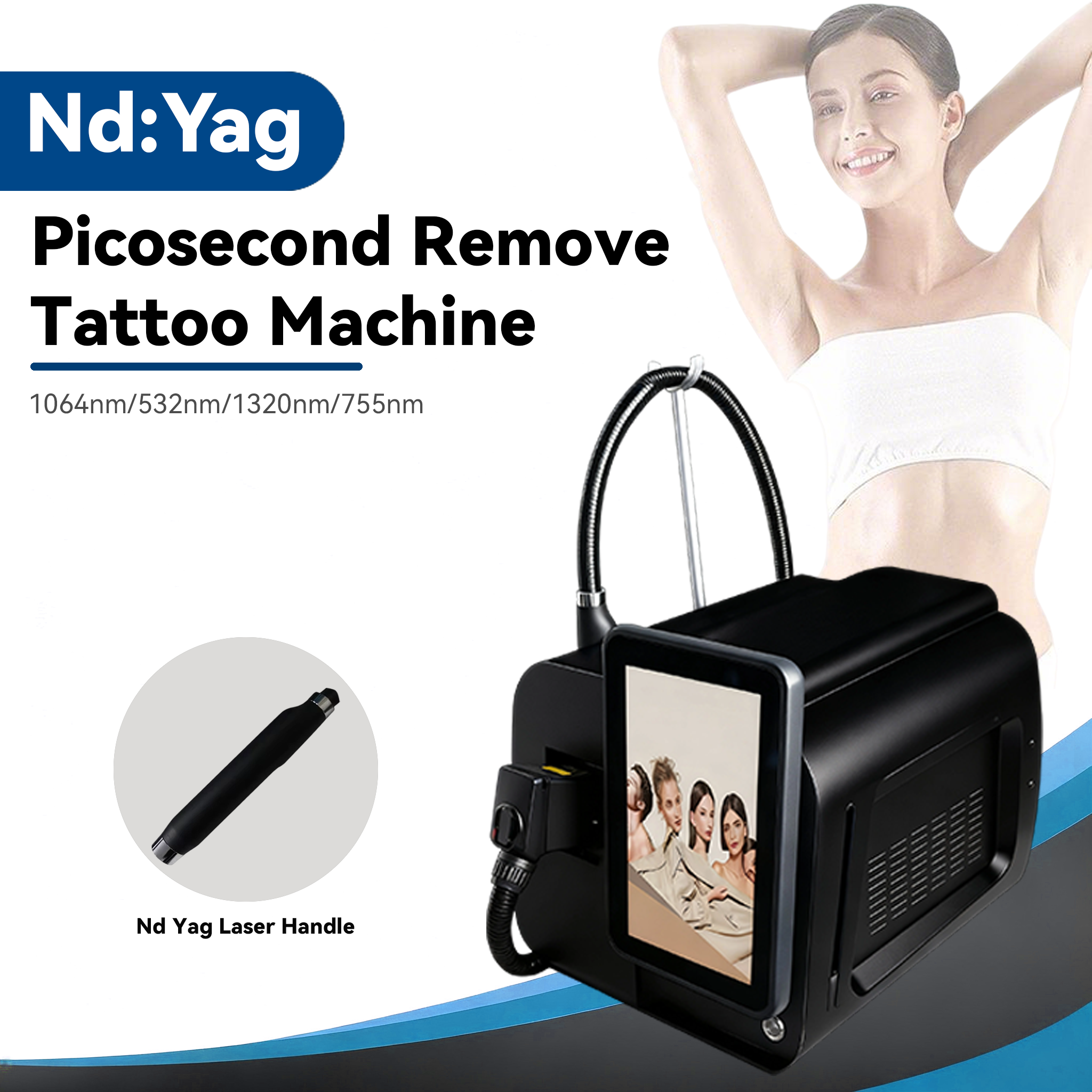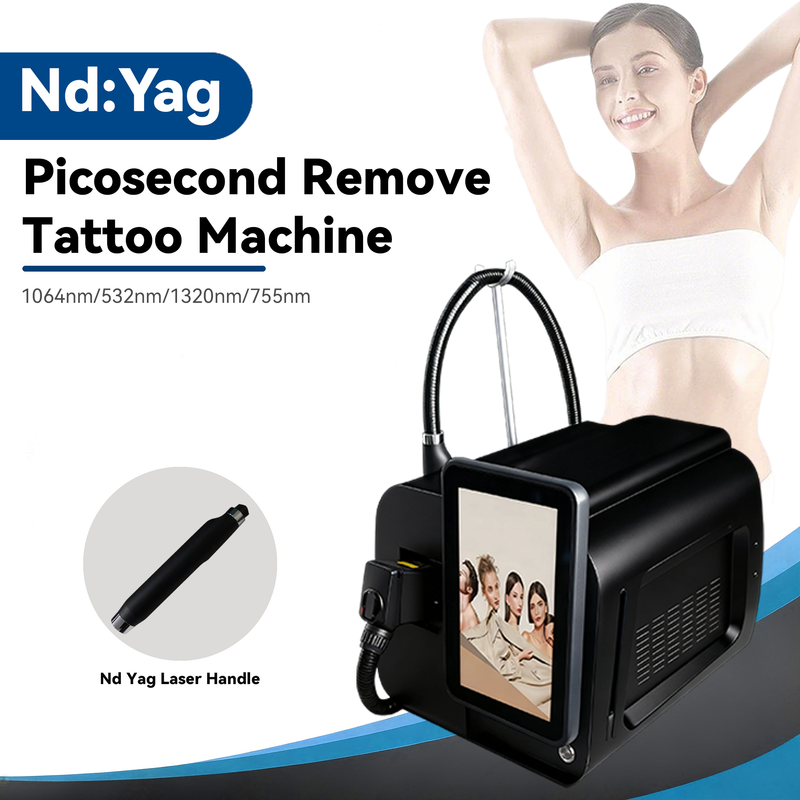 • 1064nm picosecond laser: Penetrates to the middle dermis, and the ultra-short pulse generates a strong mechanical shock wave, which shatters deep pigment particles and tattoo pigments into nano-scale fragments. The fragments are excreted through the human lymphatic system, avoiding the risk of scars caused by thermal damage;