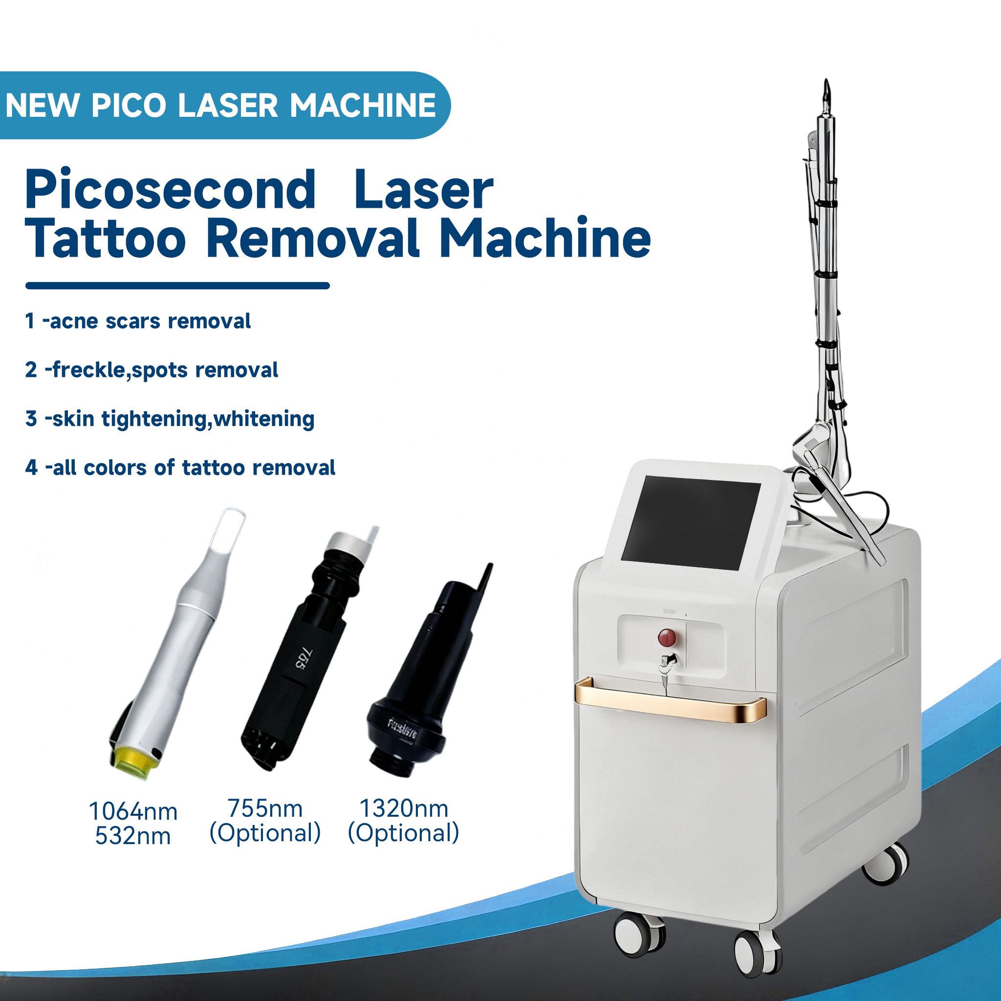 1. Three-wavelength Q Switch picosecond technology: 1064nm for dark tattoos such as black/blue and deep pigments, 532nm for light-colored tattoos such as red/orange, 755nm for difficult-to-remove colors such as green/purple, with pulse width ≤500ps and Q Switch trigger speed <10ns, shattering pigments into nano-scale fragments and reducing the risk of scarring; 2. Intelligent pigment recognition system: Built-in high-definition image acquisition module, automatically analyzes tattoo pigment composition and distribution, matches optimal wavelength and energy parameters, and improves treatment efficiency by 40%; 3. Precise energy regulation: 15-inch touch screen supports stepless adjustment of energy density (1-20J/cm²) and frequency (1-20Hz), stores 50 sets of personalized treatment programs, and supports multi-physician authority management; 4. Four-fold cooling protection: Integrating air cooling + water cooling + semiconductor + sapphire contact refrigeration, the treatment head temperature is stably maintained at 3-8℃, and the epidermal thermal damage rate is reduced to below 0.1%; 5. Professional durable configuration: The laser source has a service life of 300,000 shots, the treatment head adopts scratch-resistant quartz window, and the device has a real-time monitoring function of pigment removal rate, suitable for high-frequency diagnosis and treatment scenarios.