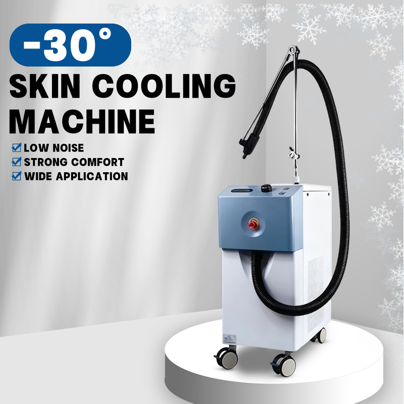 1. Dual-mode cooling system: Supports "pre-cooling mode" (quickly cool down to the target temperature before treatment) and "real-time cooling mode" (continuous temperature control during treatment). The cooling head has a contact area of 50cm², suitable for different treatment parts; 2. Precise temperature control technology: Adopts semiconductor refrigeration + phase change energy storage technology, with a temperature control accuracy of ±0.5℃. The touch screen can preset 3 groups of commonly used temperature parameters to meet the needs of different laser equipment; 3. High-efficiency heat transfer material: The cooling head is made of medical-grade sapphire, whose thermal conductivity is 30% higher than that of metal, with good biocompatibility to avoid skin irritation; 4. Intelligent adaptation design: Built-in equipment identification module, which can automatically match the model of the connected laser equipment and adjust the cooling intensity synchronously without manual setting; 5. Safety protection system: Equipped with a skin temperature sensor, which automatically shuts down when the temperature is lower than -6℃ or higher than 12℃. It also has an anti-condensation design to protect the equipment and skin.